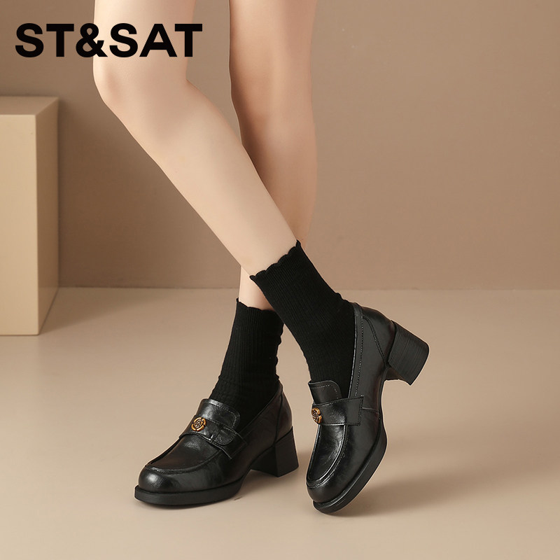 为您提供商品粗跟增高软底浅口通勤皮鞋 星期六乐福鞋 女2026春季 新款 高跟鞋的详细介绍,