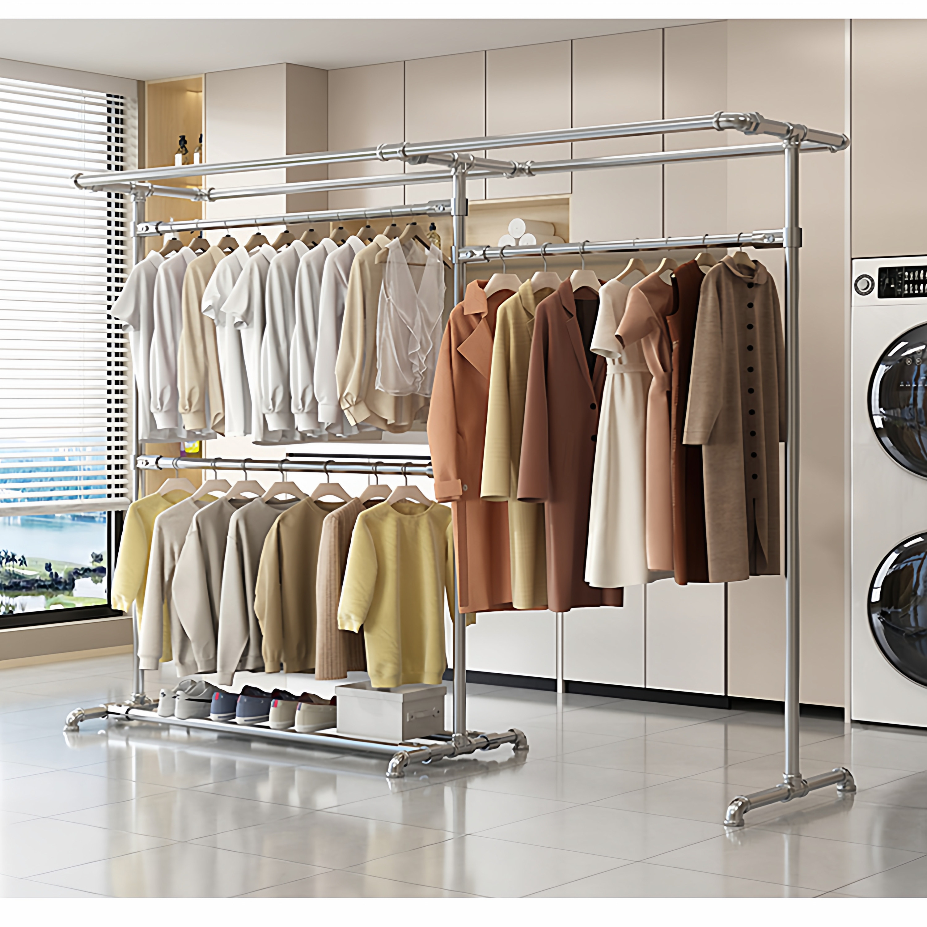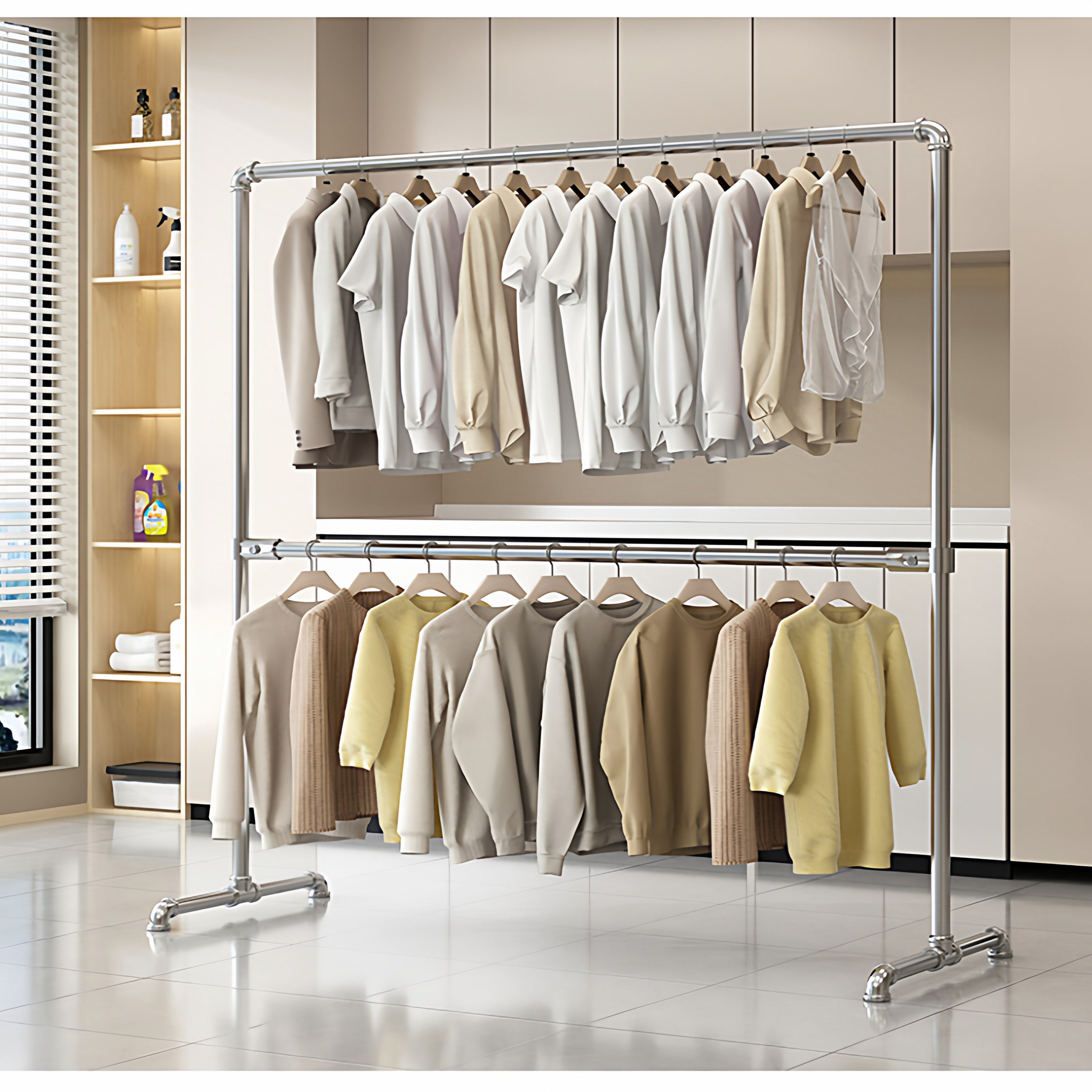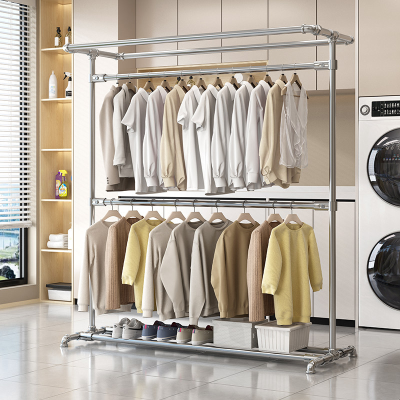 痞幼同款 金属衣帽间挂衣架组合双层卧室置物架衣柜 落地开放步入式