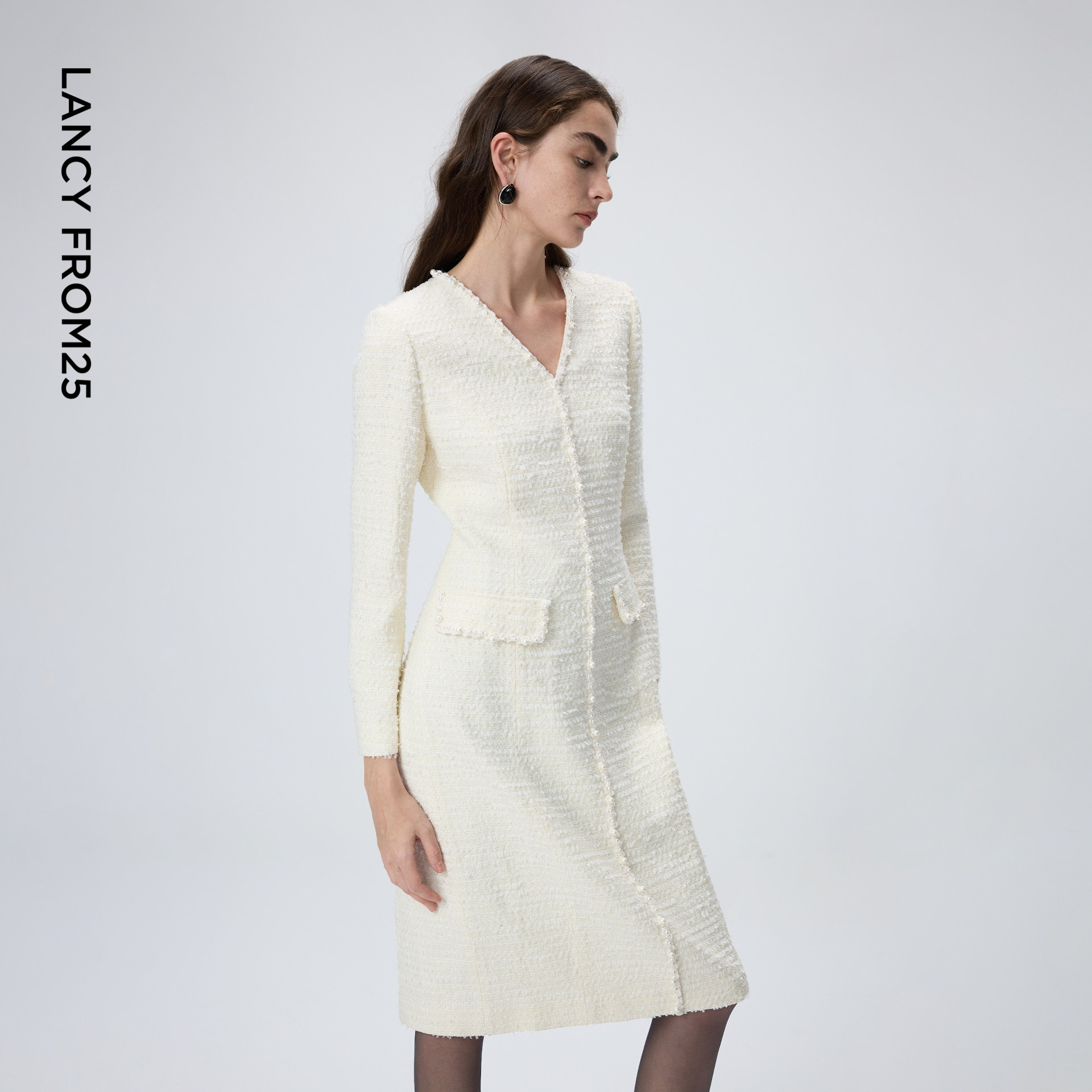 为您提供商品新款 白色V领小香风收腰连衣裙女优雅高级感2026年春季 朗姿法式的详细介绍,