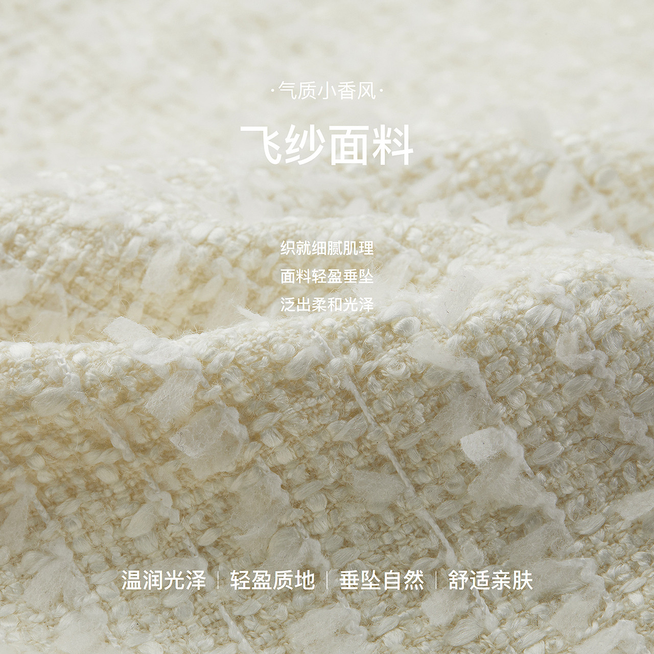 新款 白色V领小香风收腰连衣裙女优雅高级感2026年春季 朗姿法式由