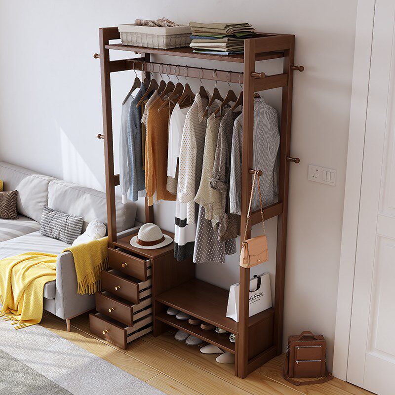 架一体卧室落地衣服收纳架进门简易置物架 实木衣帽架家用挂衣架鞋