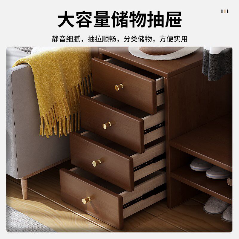 架一体卧室落地衣服收纳架进门简易置物架 实木衣帽架家用挂衣架鞋由