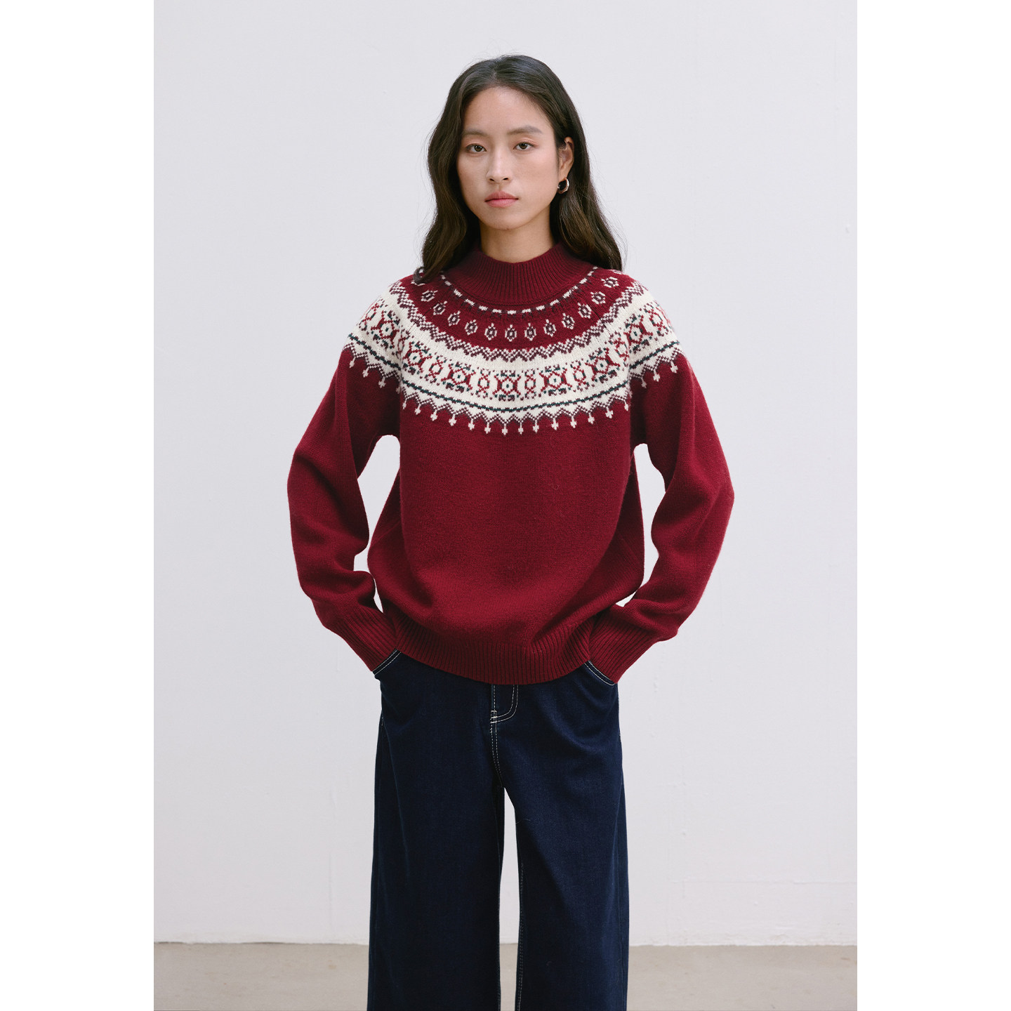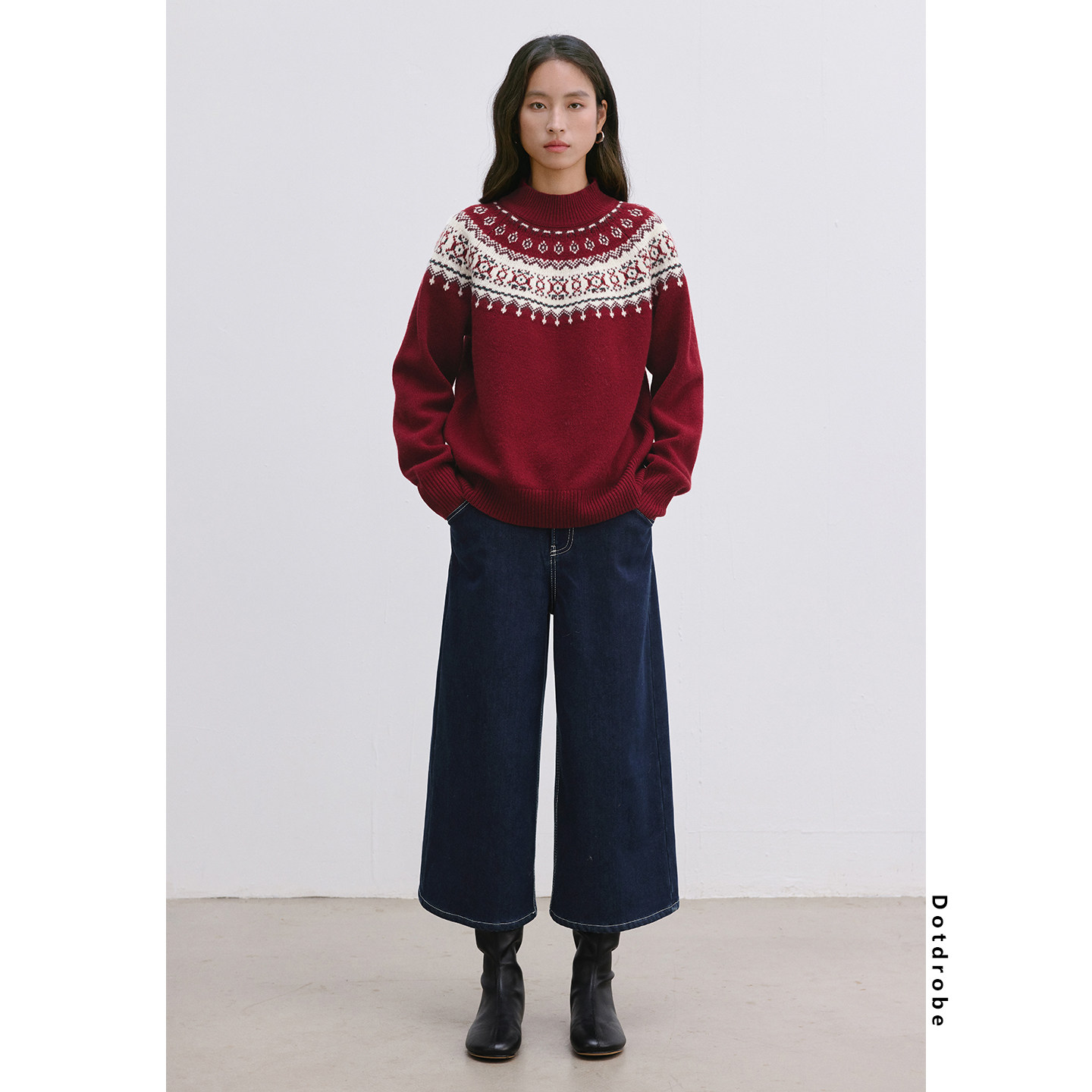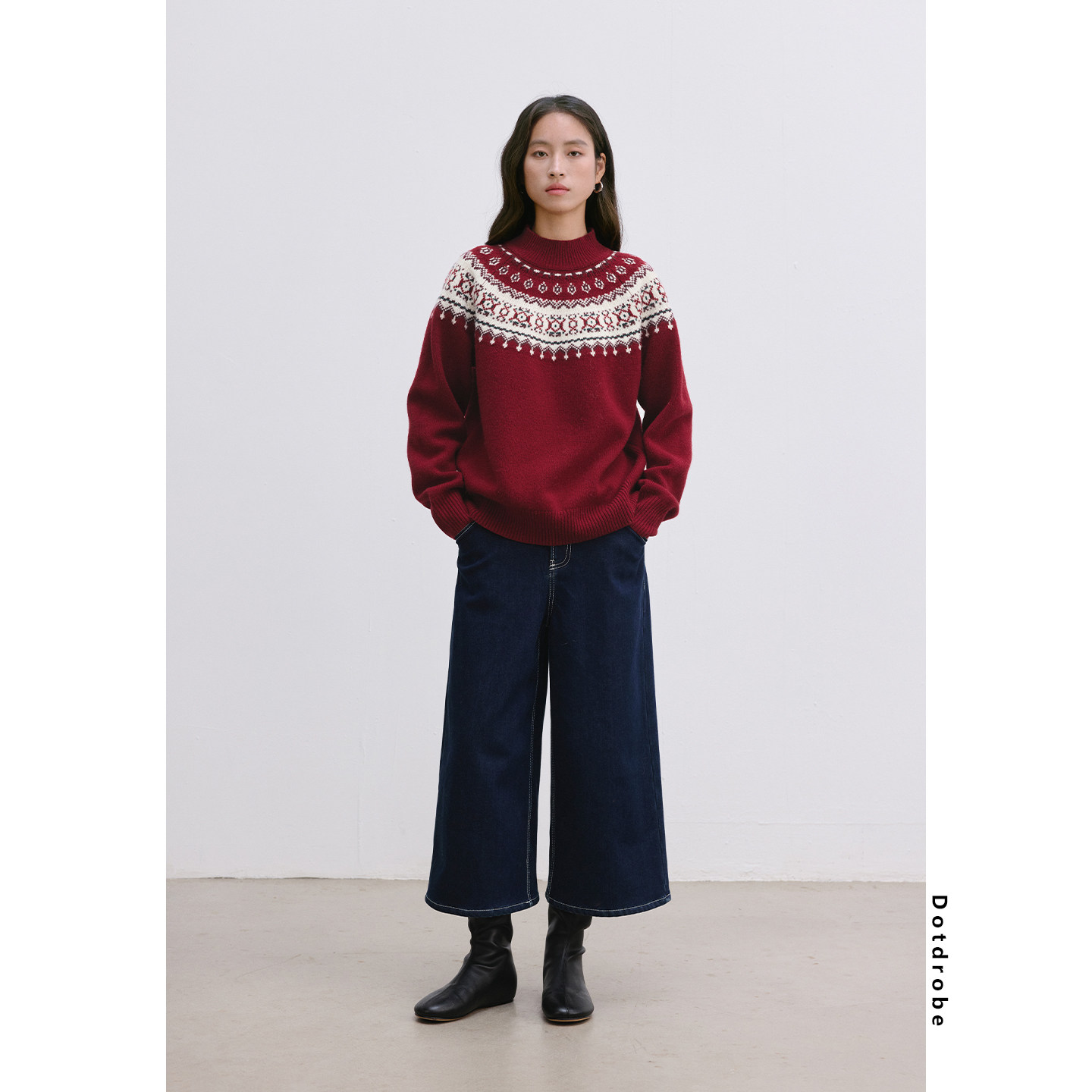 新款 100%羊毛复古费尔岛圆领套头毛衣女秋冬针织衫 Dotdrobe多着