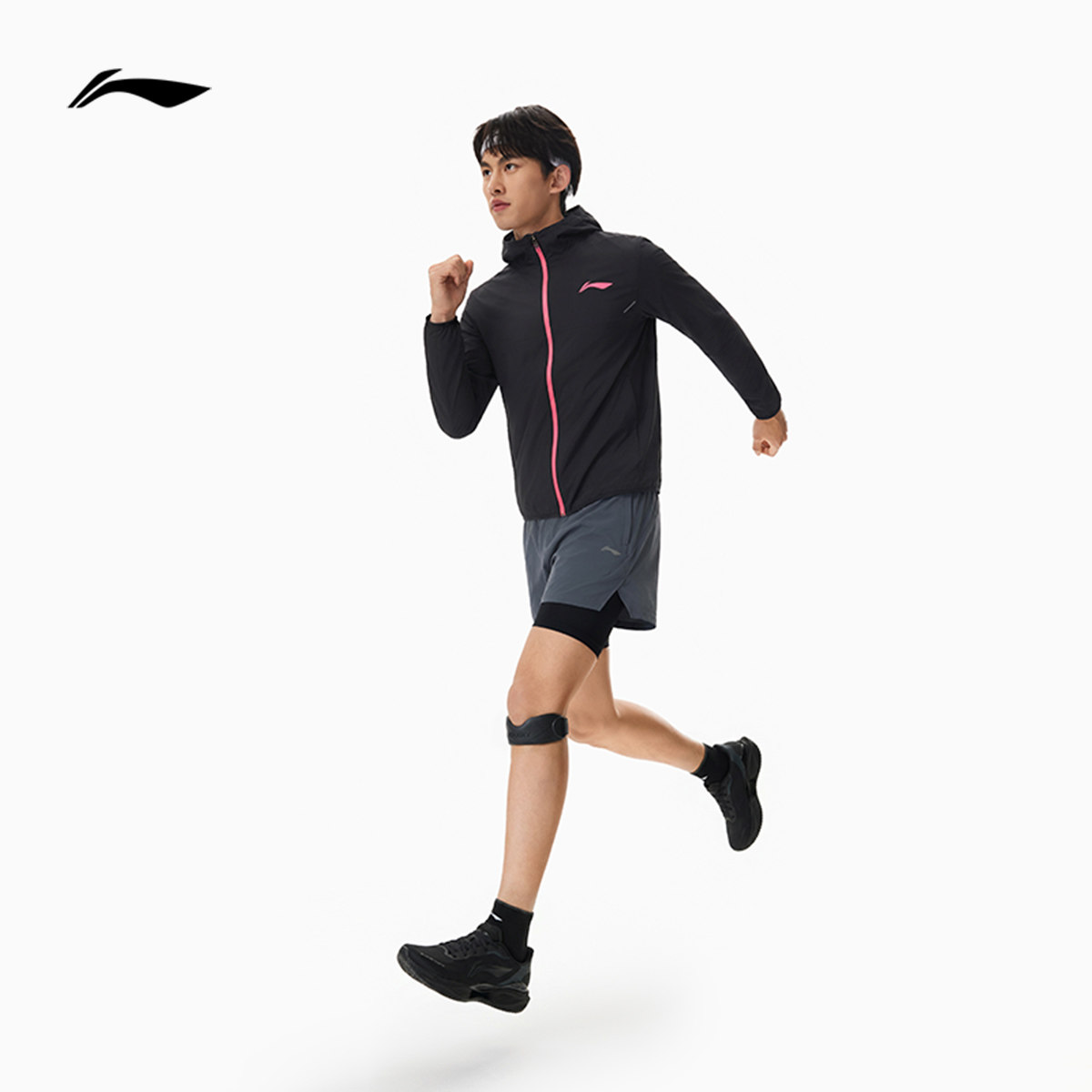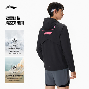 李宁外套男跑步健身开衫 防风排湿冰感舒适连帽夹克运动风衣 长袖由