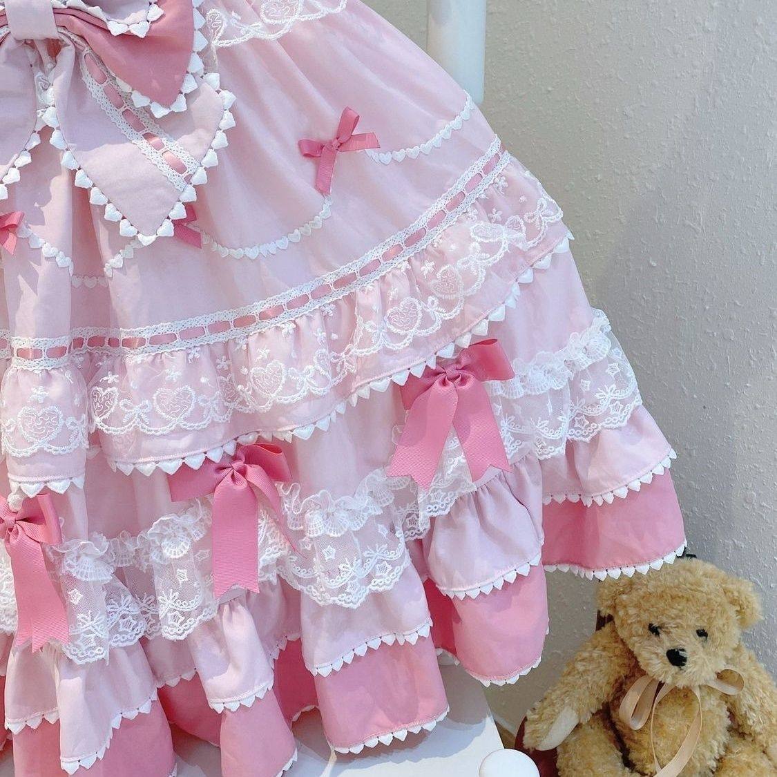 蝴蝶结洛丽塔软妹大小姐公主裙 粉色公主裙可爱lolita花嫁温柔洋装