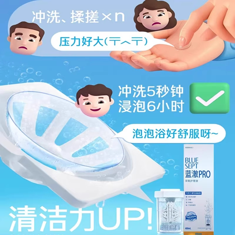爱尔康蓝澈双氧水RGP硬性角膜接触镜OK镜多功能除蛋白护理液480