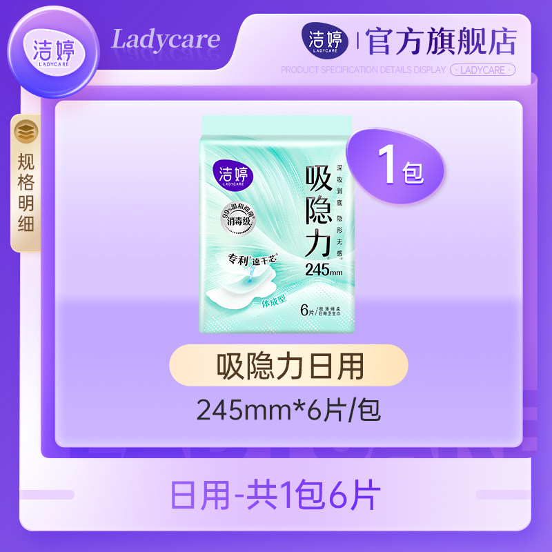 洁婷吸隐力消毒级透气速干卫生巾日用245mm 6片 天猫U先