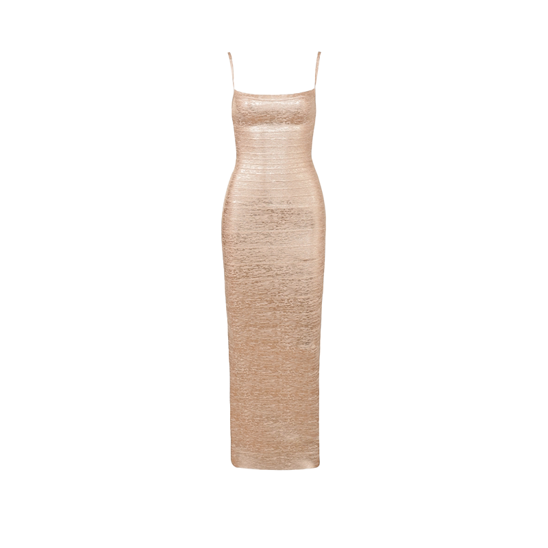 CB优雅香槟色弹力绷带超长连衣裙The Body House由