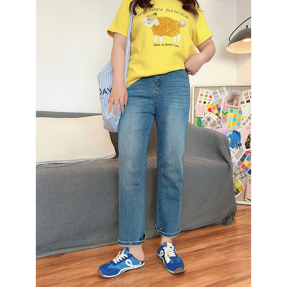 eihey诶嘿低腰修身 长裤 阔腿裤 女 直筒休闲宽松做旧磨白水洗牛仔裤