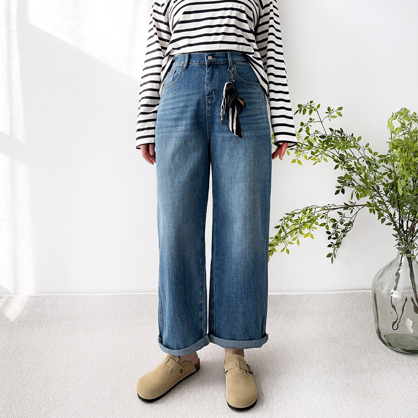 胖mm直筒老爹裤 大爽大码 子潮 高腰男友裤 女春季 女装 微胖哈伦牛仔裤