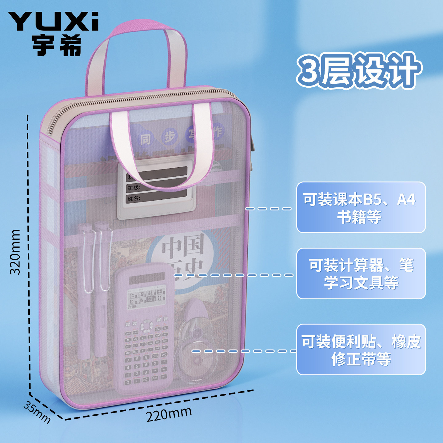 为您提供商品学科手提袋拎书袋课本分类试卷收纳袋 宇希L型科目分类袋初高中生专用透明加厚网纱大容量分科袋文件袋拉链式的详细介绍,
