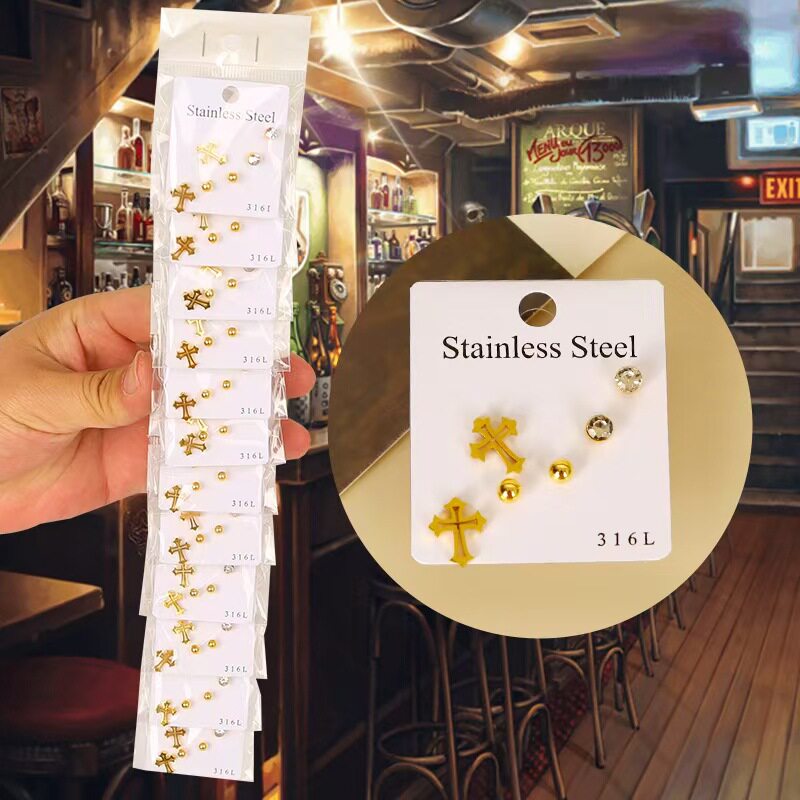 保色钢钉耳钉三对装 耳环礼物耳饰生日礼物送女生闺蜜 一周耳饰套装
