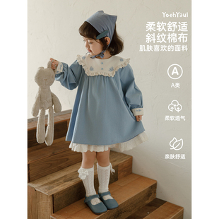 斜纹纯棉蕾丝森系连衣裙灯笼袖 女孩可爱裙子 新款 幼悠女童2026春季