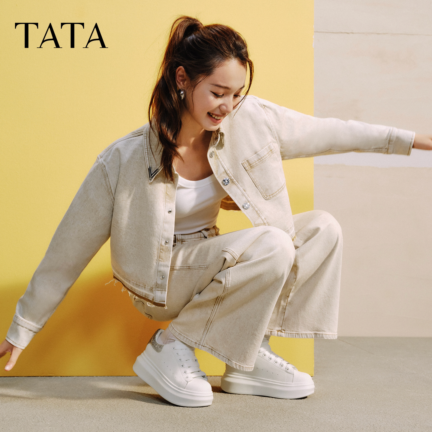 休闲厚底女板鞋 TATA他她小白鞋 2025秋商场同款 时尚 WU507CM5 新款由