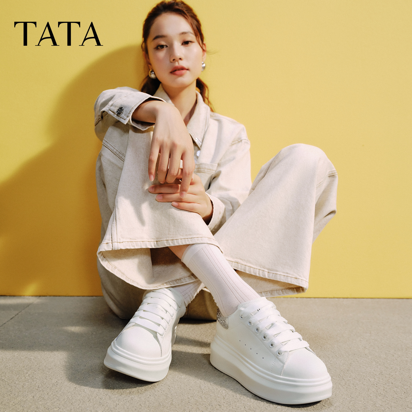 休闲厚底女板鞋 TATA他她小白鞋 2025秋商场同款 时尚 WU507CM5 新款