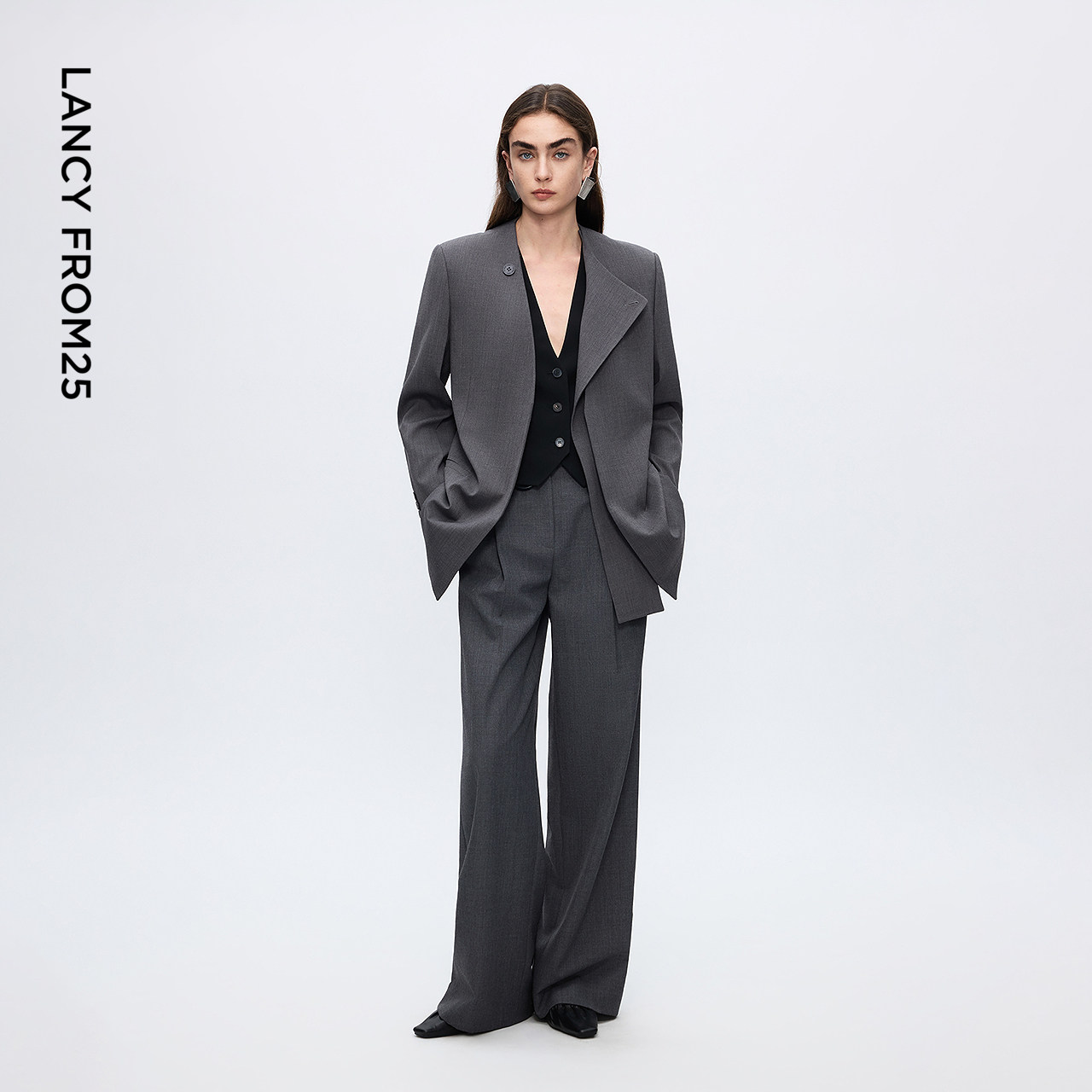 裤 灰色阔腿裤 宽松休闲西装 高腰垂感天丝羊毛直筒裤 女2026春季 新款