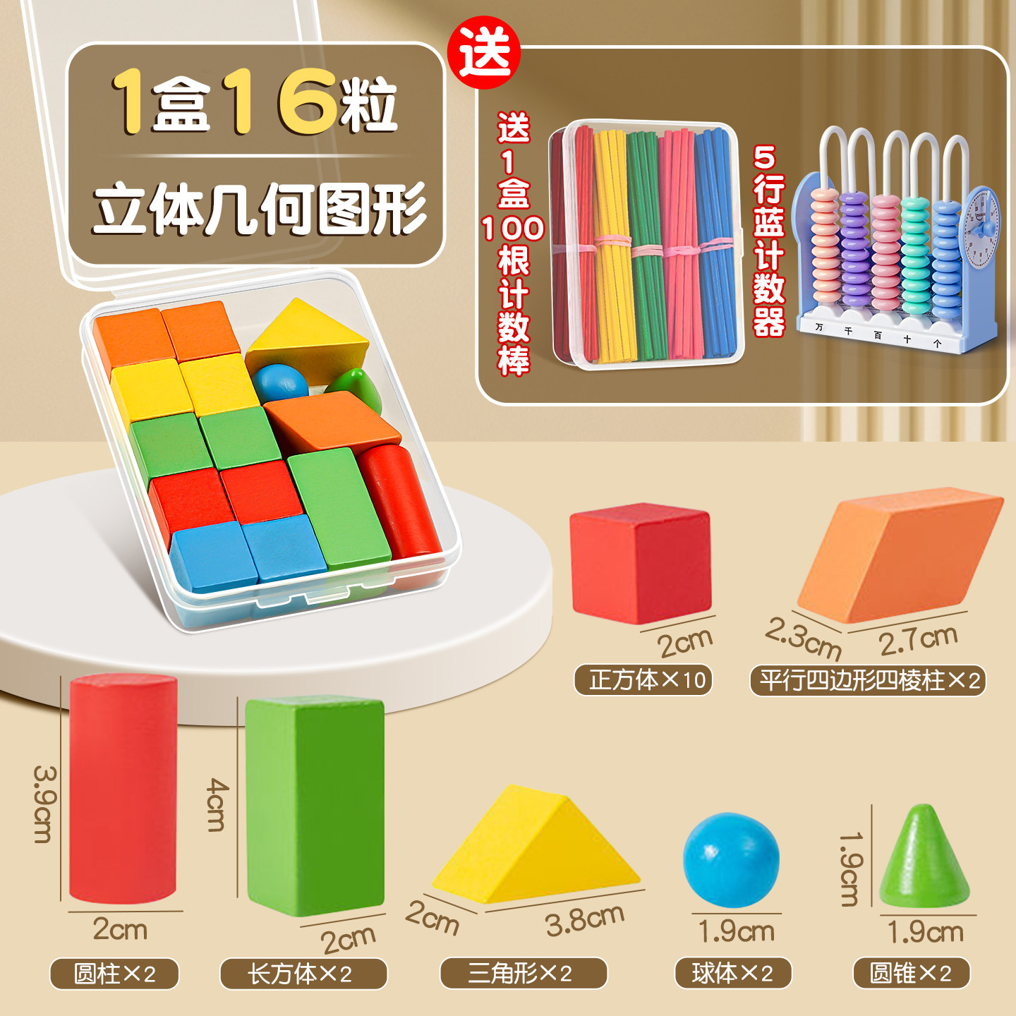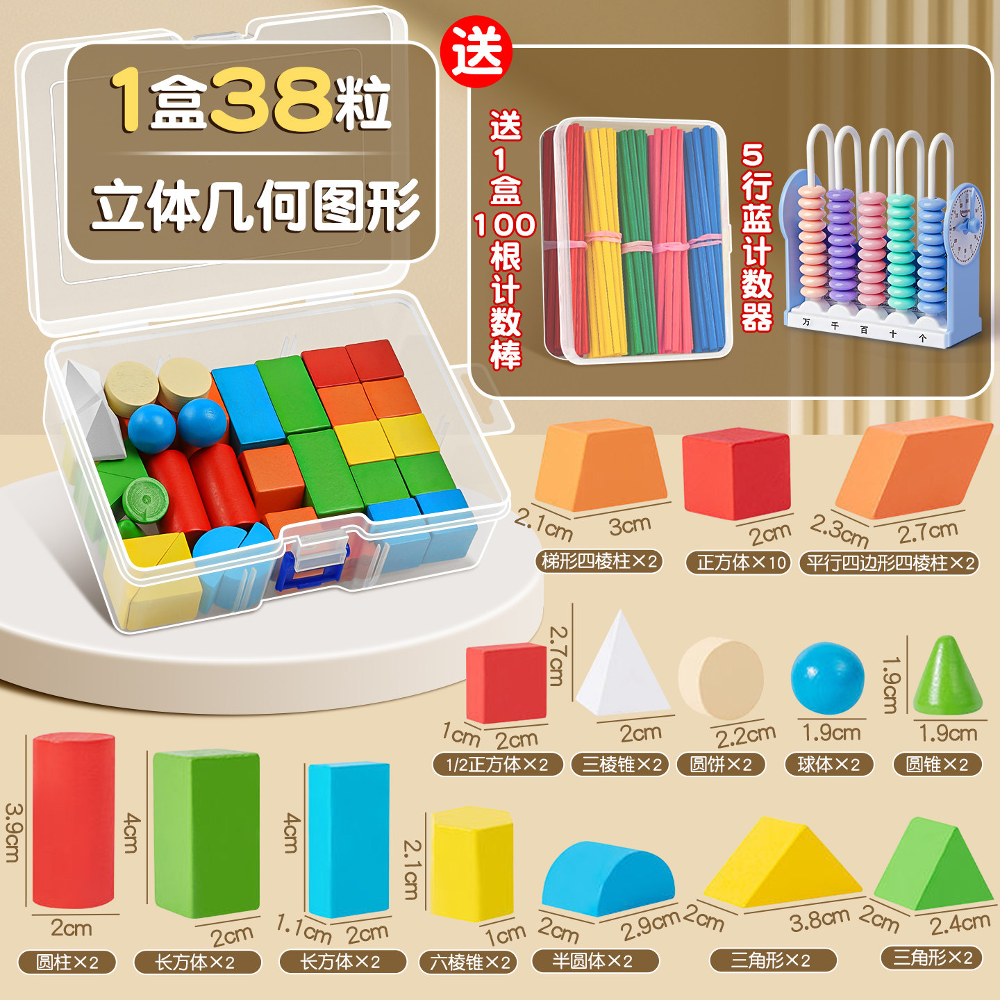 同步立体正方体长方体模型圆柱体圆锥数学配套教材学具C1 38粒几何体小学数学立体图形教具一年级全套套装由
