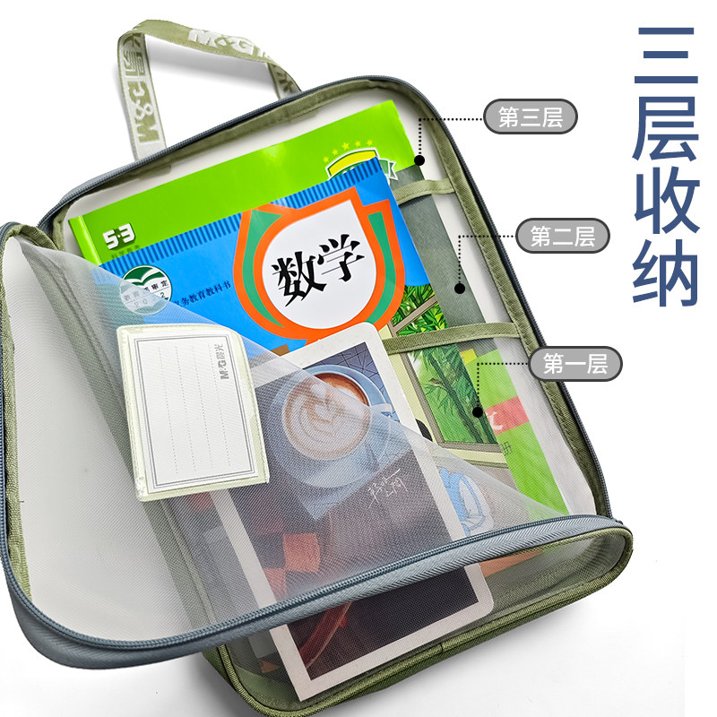 小学生初中生专用手提书袋高中生试卷资料书本作业袋子档案科目分类袋 双层大容量A4透明网纱文件收纳袋拉链式