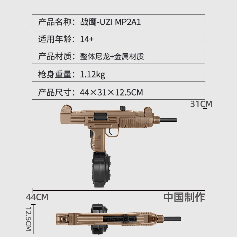 mp2a1乌兹金齿电动连发冲锋枪下场模型玩具wargame发射器 战鹰UZI