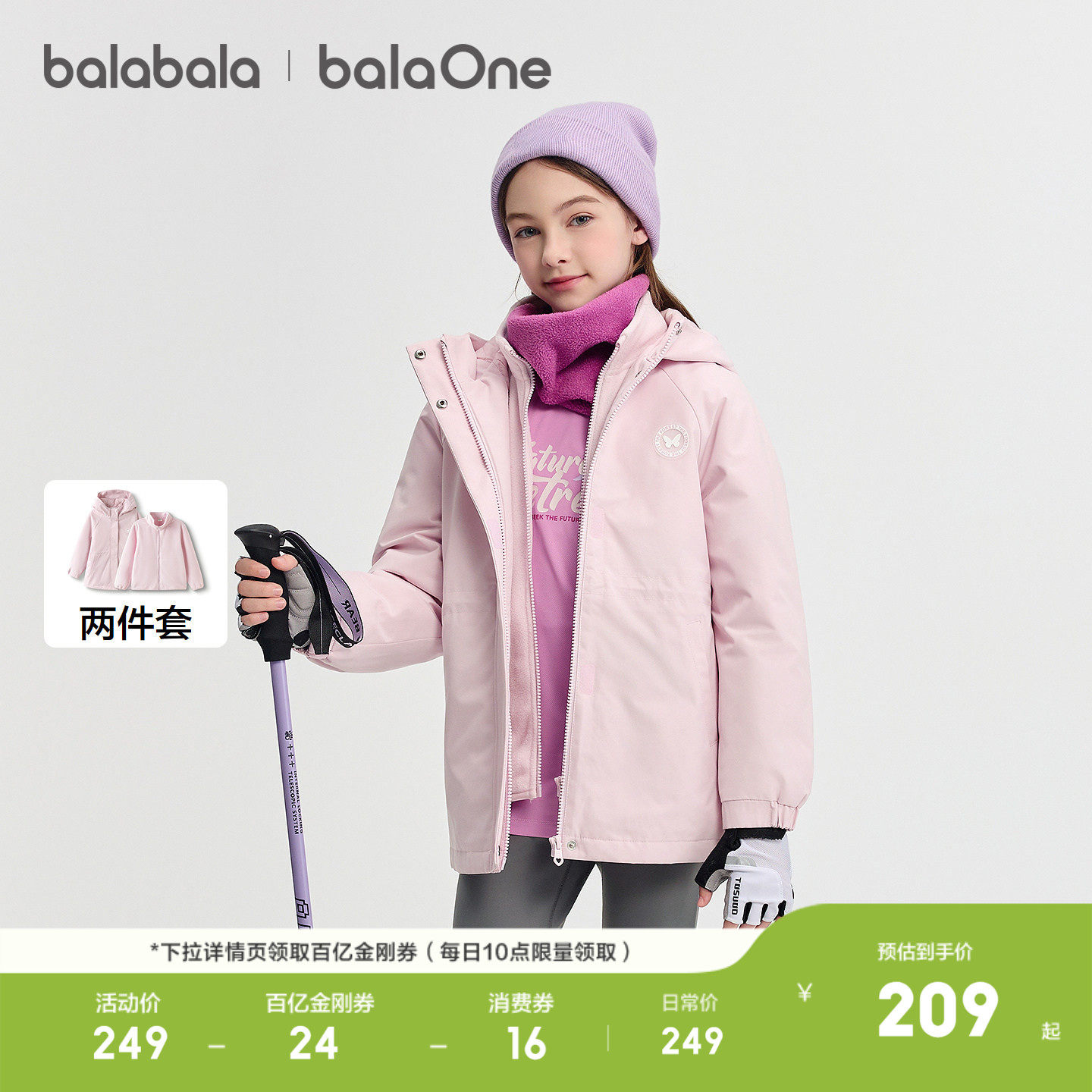 巴拉巴拉童装 防泼水保暖潮加厚保暖 儿童棉服女童外套两件套秋冬装