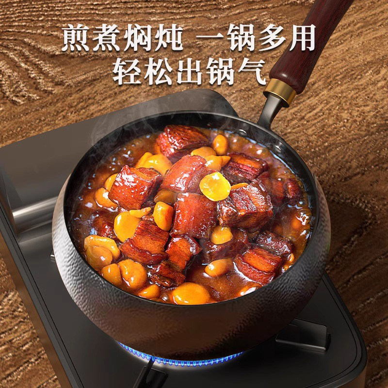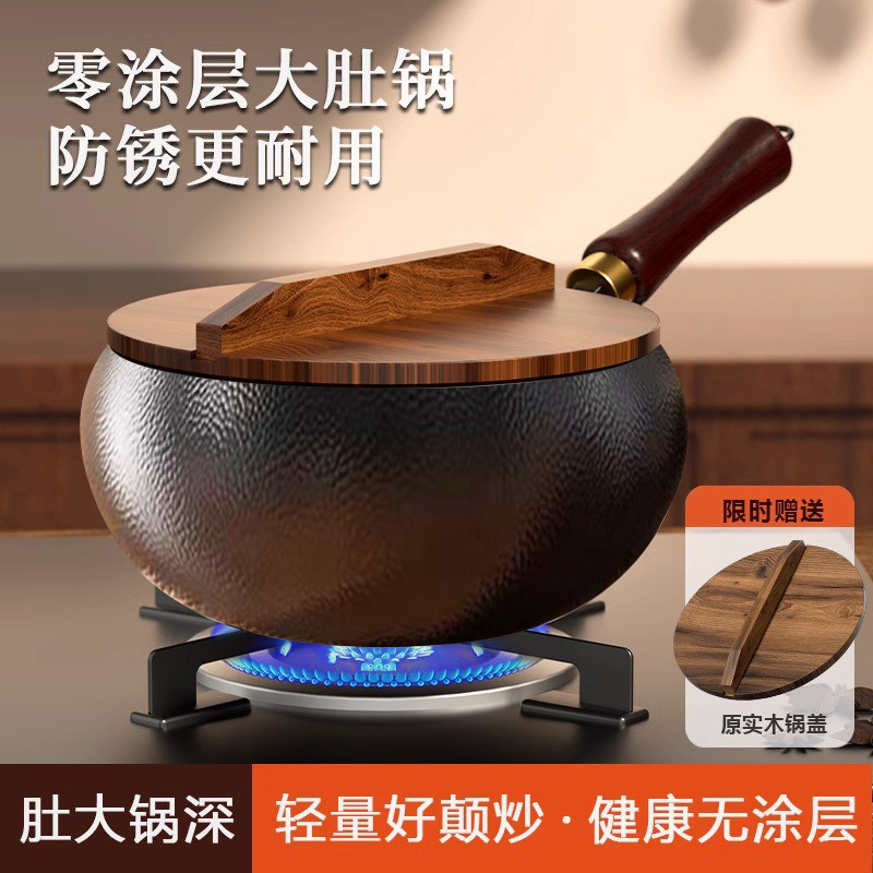 古法大肚锅章丘铁锅不粘锅一人食家用小炒锅无涂层炒菜锅煎锅 新款