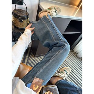 女春新款 大长腿既视感 四面弹窄版 直筒牛仔裤 开叉宽松阔腿长裤