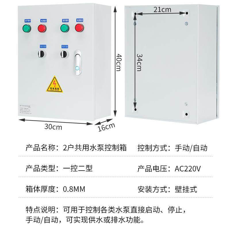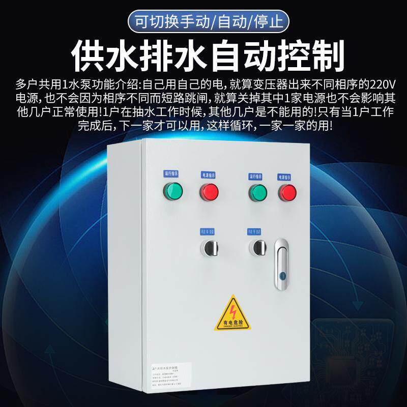 为您提供商品家用220V两户共用一个水泵浮球液位控制箱自动抽水2户一泵配电箱的详细介绍,