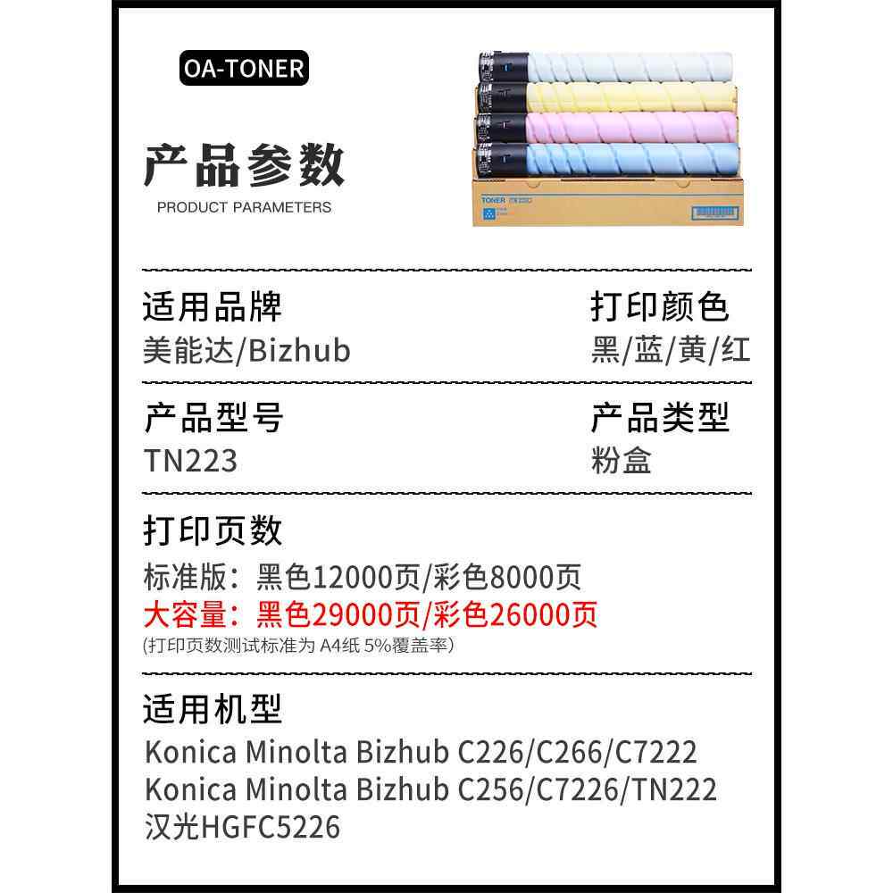 为您提供商品7226 适用柯尼卡美能达C226 TN223震旦ad c7222 c266 bizhub c256的详细介绍,