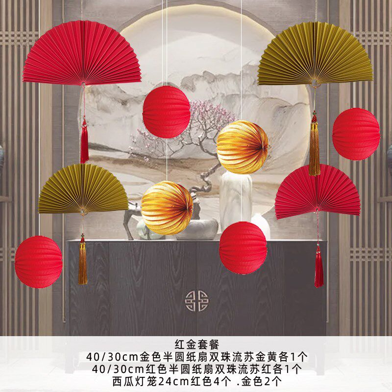 新年元 饰秋天布置灯笼背景吊顶商场门店铺橱窗氛围挂件 旦节年会装