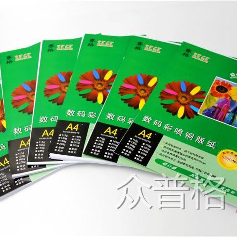 赛格铜版 A4彩喷铜版 A4双面高光铜版 铜板纸50张多种规格 纸由
