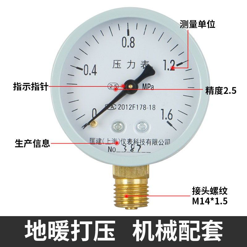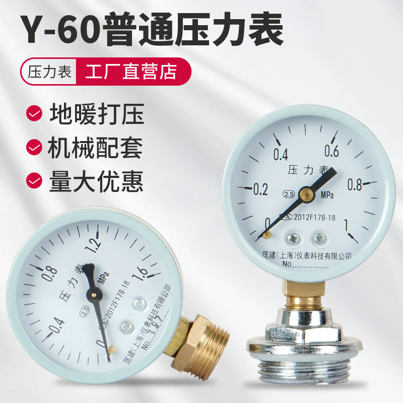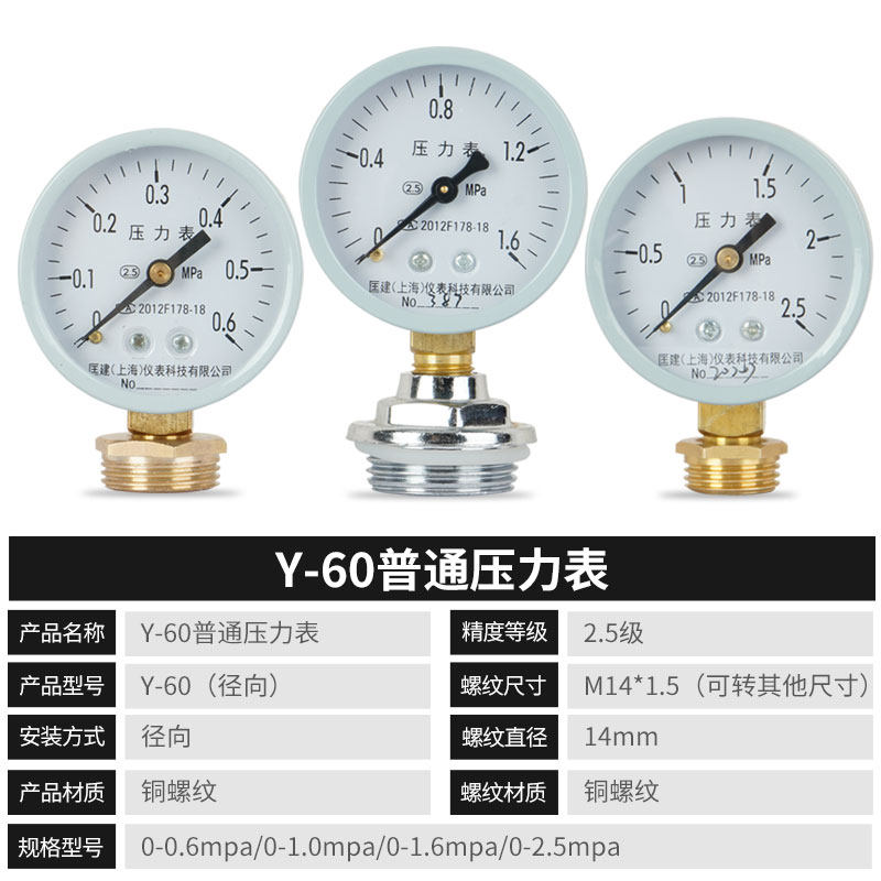 为您提供商品压力表y60耐震普通压力表测自来水气压表0 1.0 1.6 2.5mpa 0.6的详细介绍,