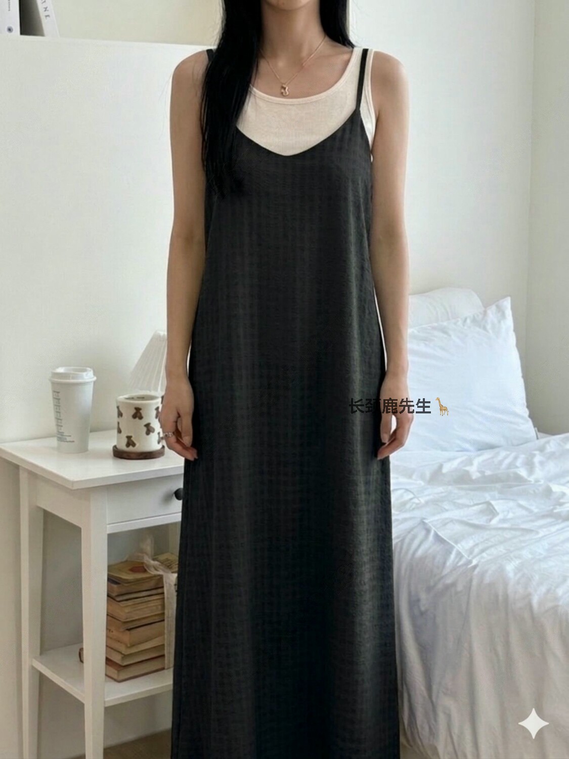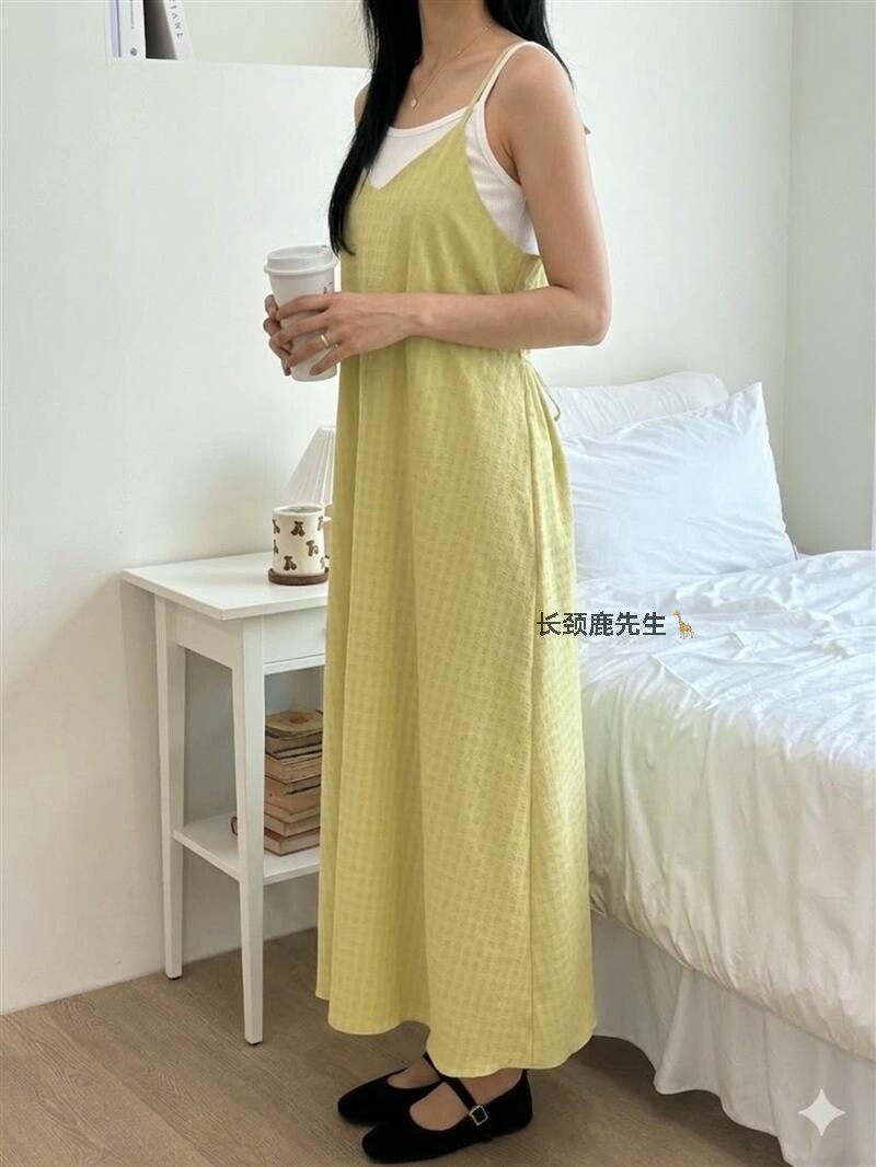 2026年春夏新款 cream系带格纹吊带连衣裙 韩国东大门