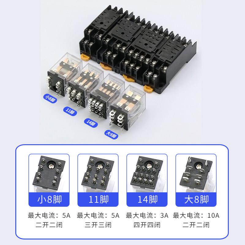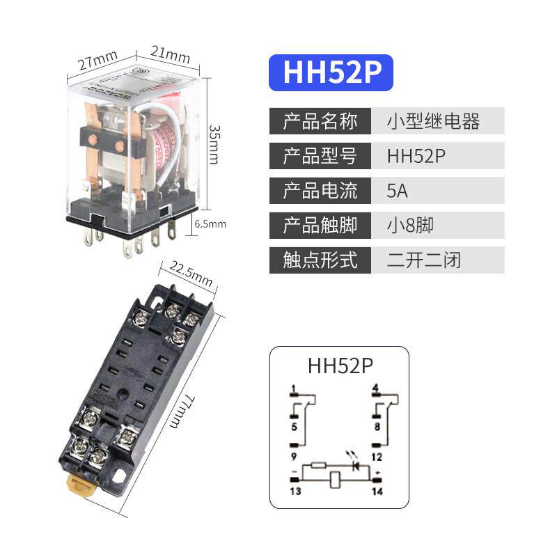 中间继电器24V直流220V交流12vHH52P小型电磁继电器8脚14脚带底座