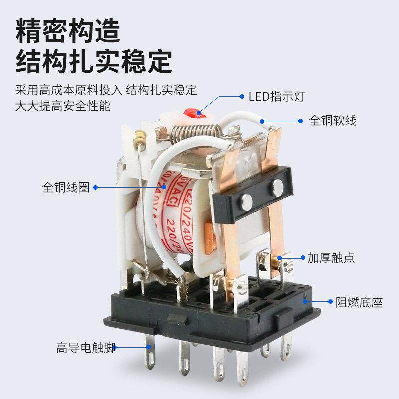 小型中间继电器220v交流24v12v直流HH52P电磁53P54P带灯底座MY2NJ