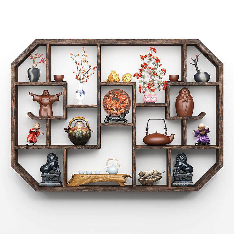 为您提供商品博古架实木中式 置物架隔断多宝阁格子架摆件简约茶具架 挂墙壁挂式的详细介绍,