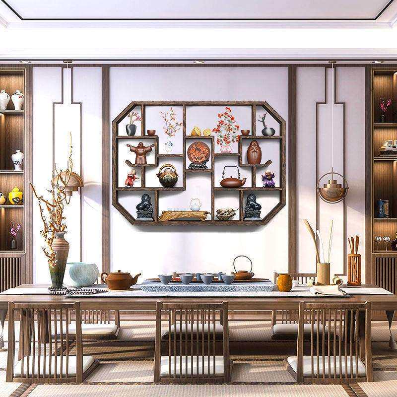 博古架实木中式 置物架隔断多宝阁格子架摆件简约茶具架 挂墙壁挂式