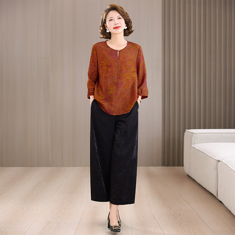 新款 时尚 套装 中年女春季 休闲两件套洋气上衣春秋 40岁妈妈春装