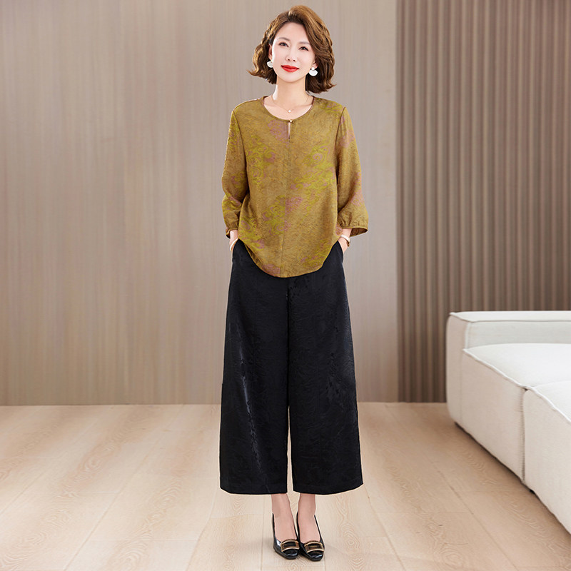 裤 新中式 子两件套 宽松桑蚕丝小衫 女夏季 国风妈妈装 真丝香云纱套装