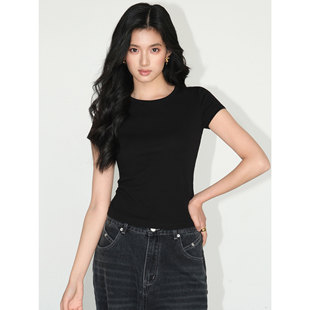圆领紧身百搭气质短款 NEVA 针织上衣 t恤女基础款 短袖 白色修身
