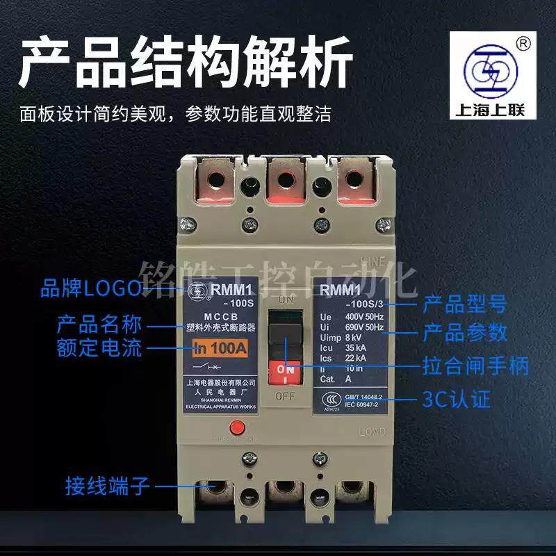 03300GPH壳断路器RMM1塑 100S1100A空气开 80H 上海人民上联牌RMM