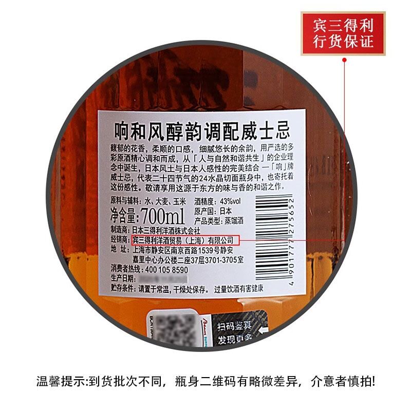 行货带盒带码 2瓶装 响和风醇韵威士忌700ml三得利日本进口 正品由