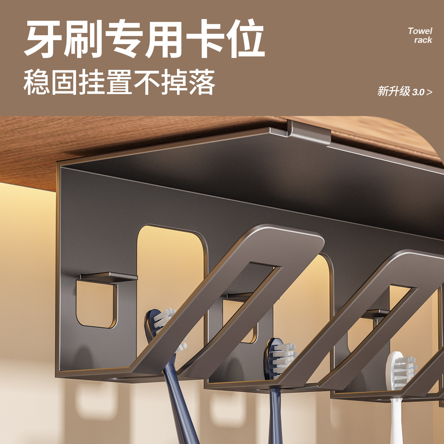 免打孔镜柜下漱口杯刷牙杯牙具电动牙刷架 卫生间牙刷置物架壁挂式