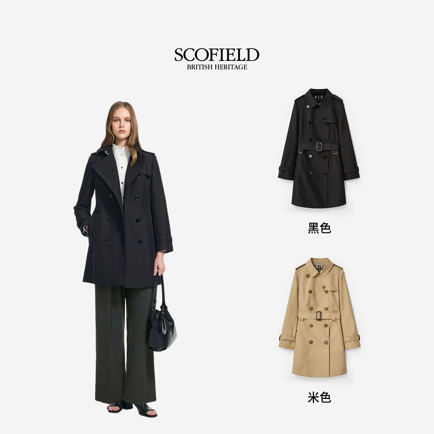 为您提供商品Scofield女利落英伦双排扣风衣格纹细节2026春季 新品 匹马棉的详细介绍,