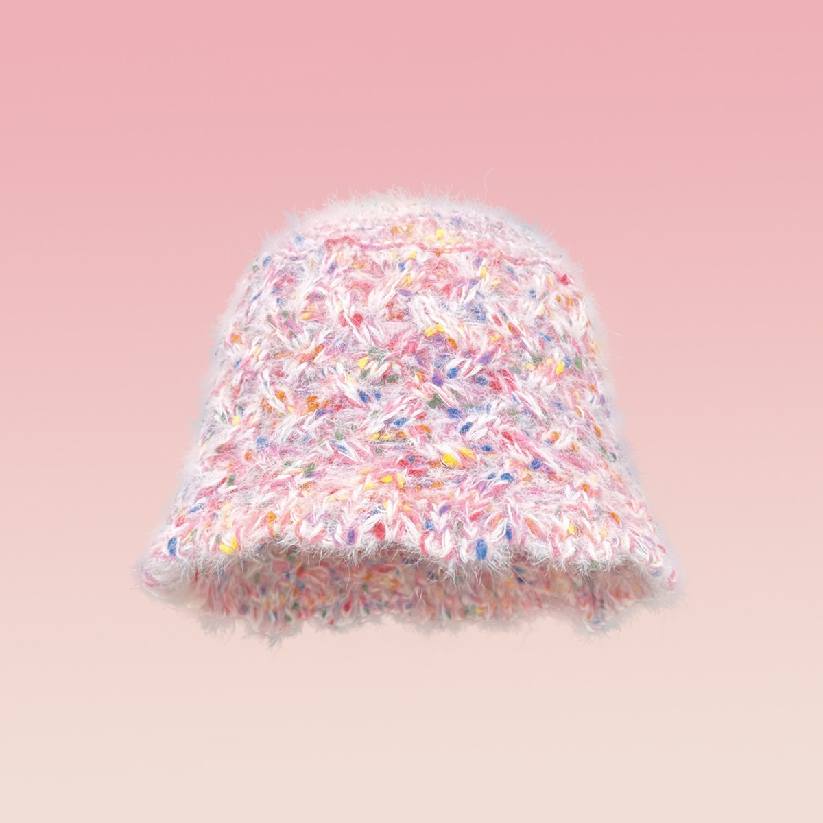 Classy 彩色豆豆针织渔夫帽子显脸小水桶帽 key新加坡设计师联名款