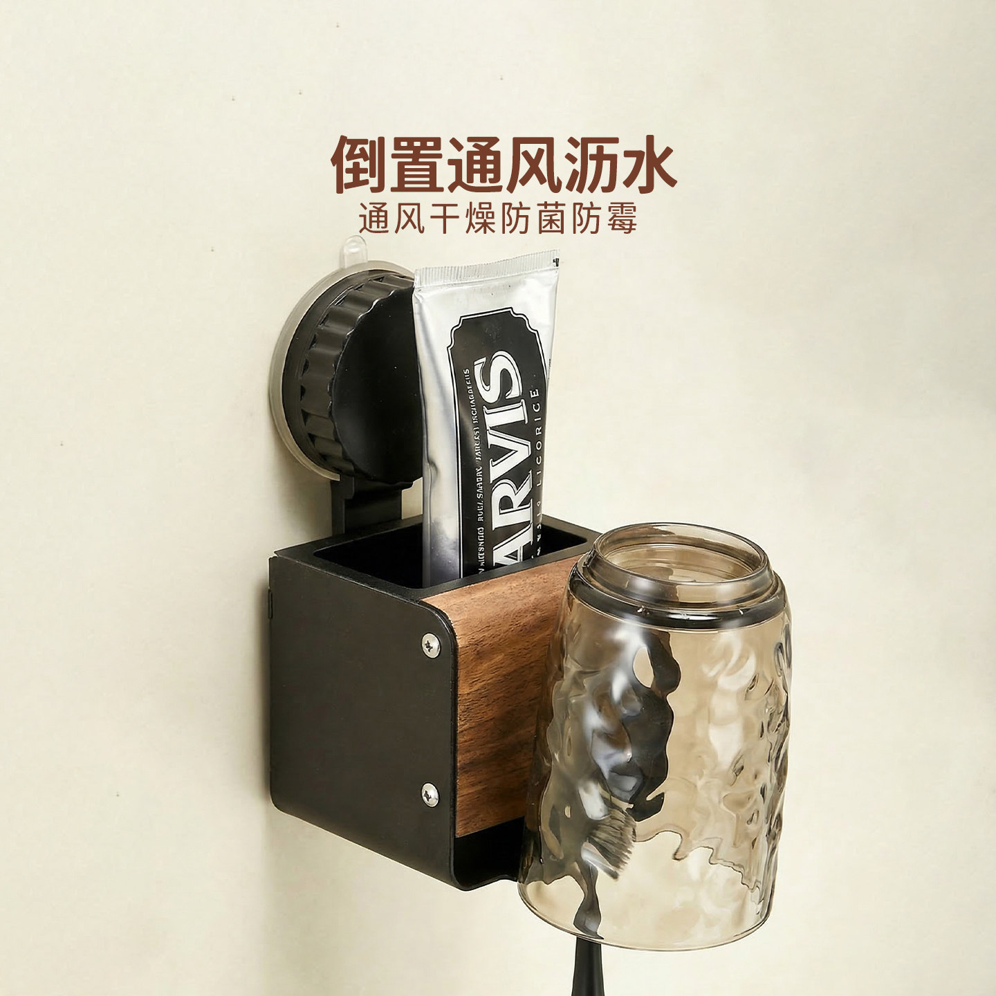 者纳里 吸盘免打孔洗漱台漱口杯收纳架 电动牙刷牙杯置物架壁挂式由