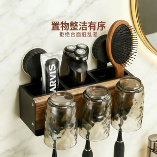 者纳里 吸盘免打孔洗漱台漱口杯收纳架 电动牙刷牙杯置物架壁挂式