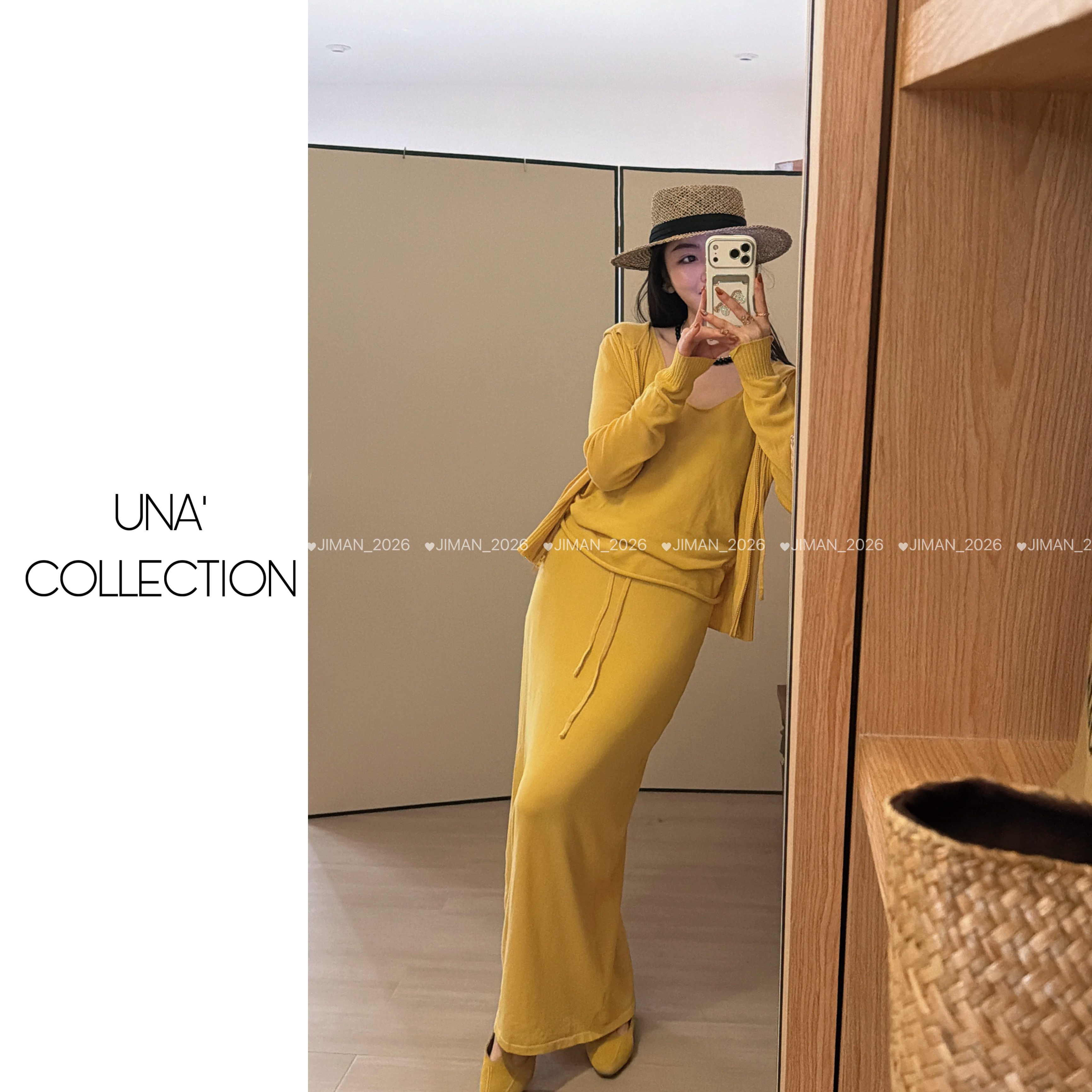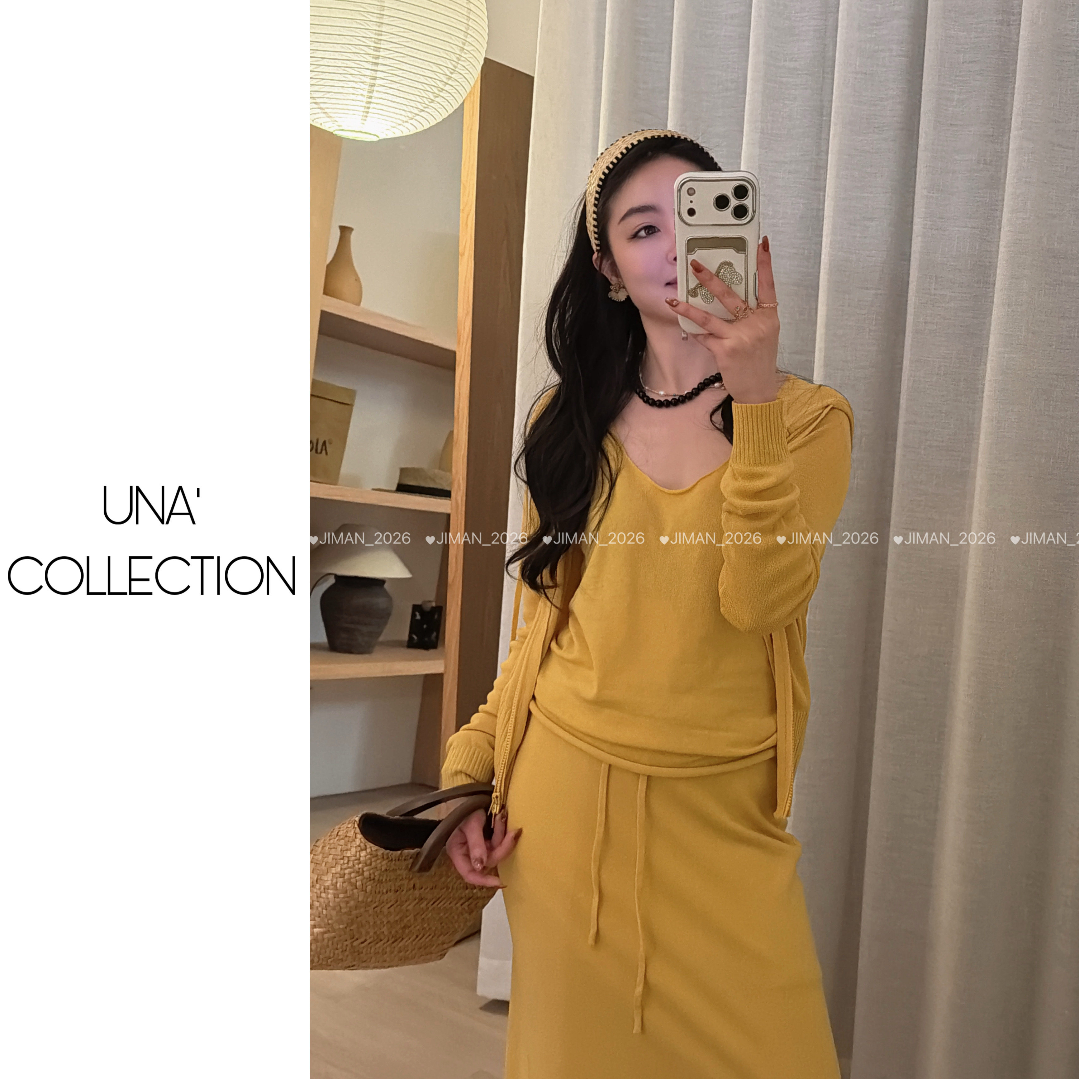 臻麻丝连帽针织开衫 吉满 雕塑女神 半身裙三件套JM3084 背心由