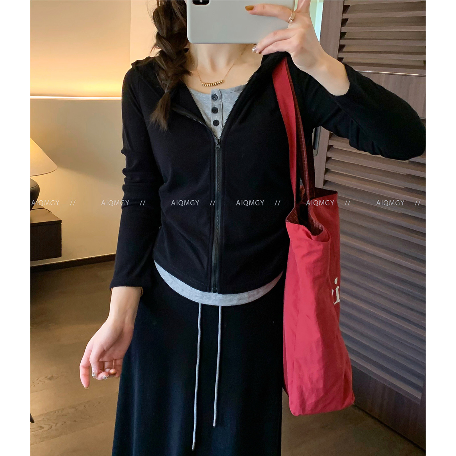 爱情魔鬼鱼 套装 裙女2026春季 拉链连帽上衣半身裙长裙两件套 时尚由