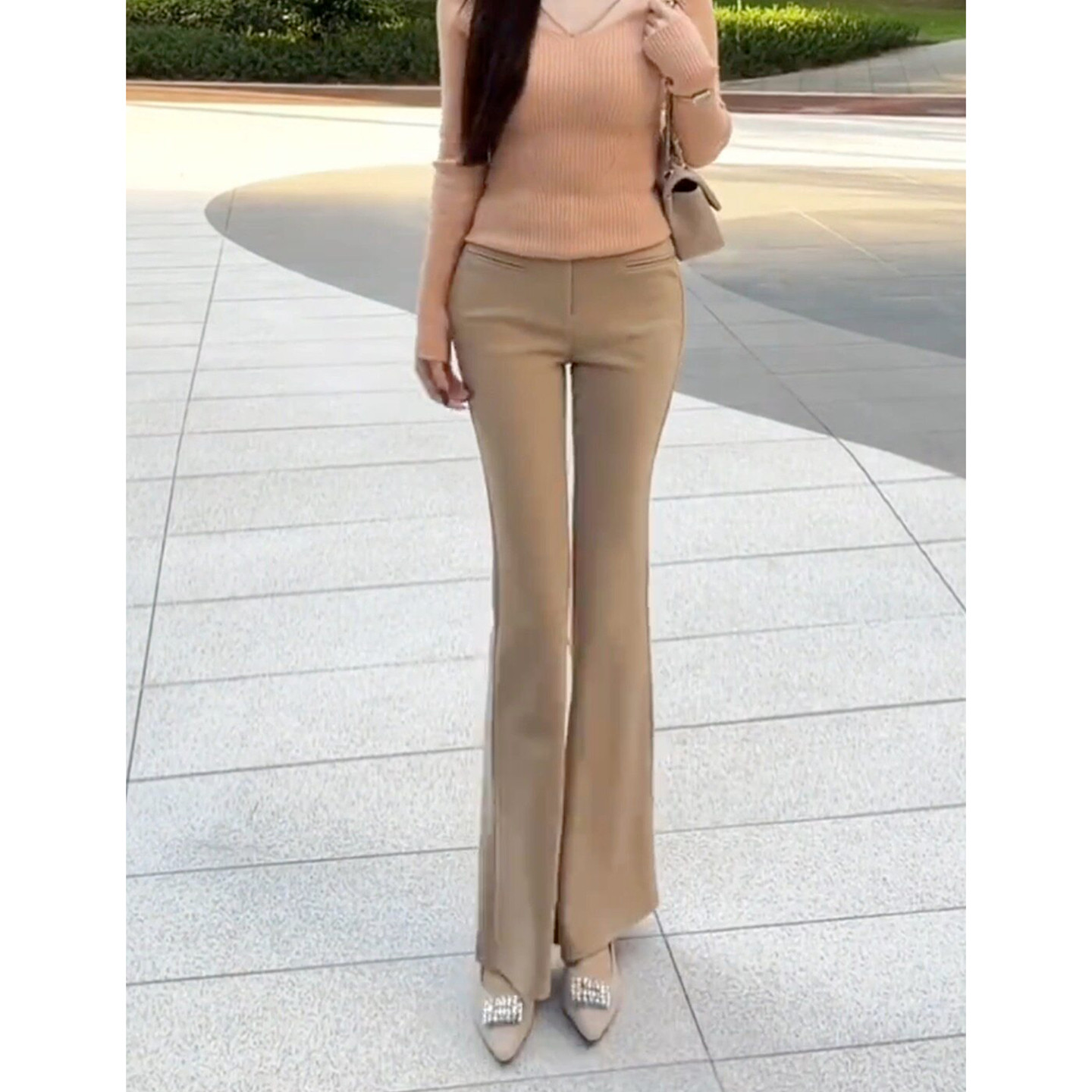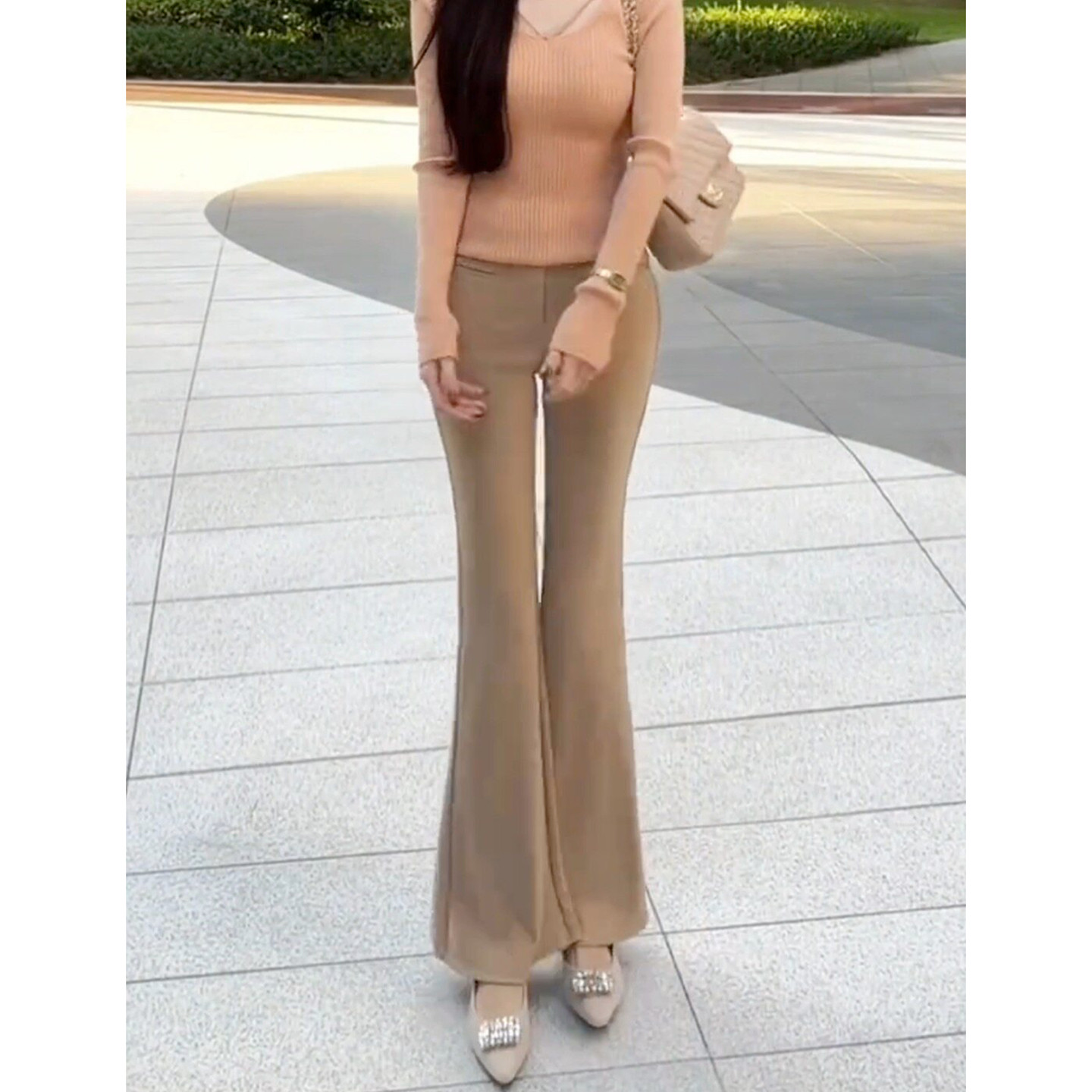 为您提供商品温柔气质轻熟风卡其色休闲修身 女2026春季 新款 显瘦高腰马蹄微喇裤的详细介绍,