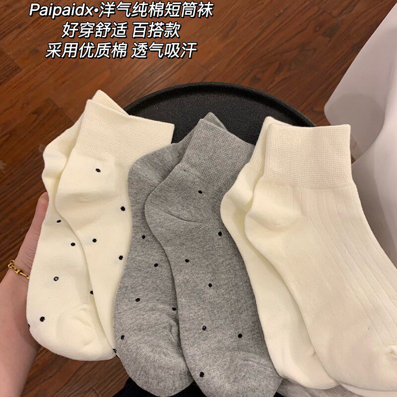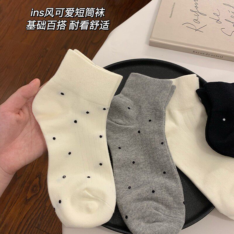 波点木耳边月子袜女 奶白色中筒袜子女春夏百搭纯色堆堆袜长袜韩版